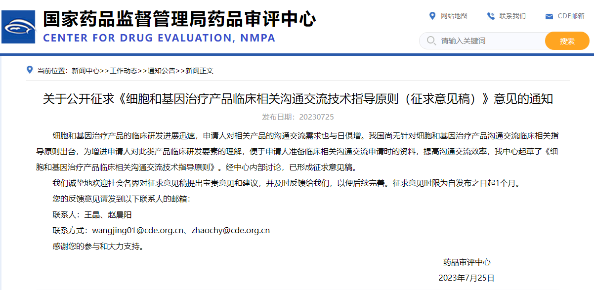 本指导原则旨在为细胞和基因治疗产品临床研发过程中沟通交流的资料准备和临床研发要素考虑等提供建议,以期提高沟通交流效率,助力细胞和基因治疗产品的临床研发能顺利推进。